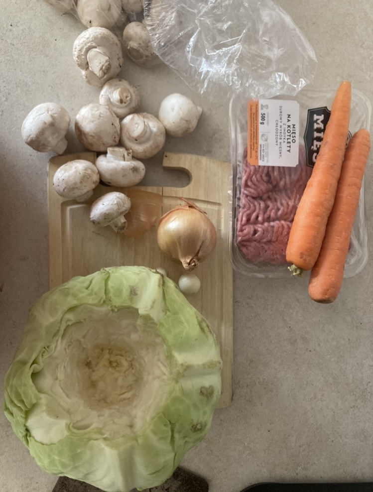 - Kapustę białą (kup całą mniejszą główkę, to czego nie zużyjesz do gołąbków, możesz użyć do np. Colesława)