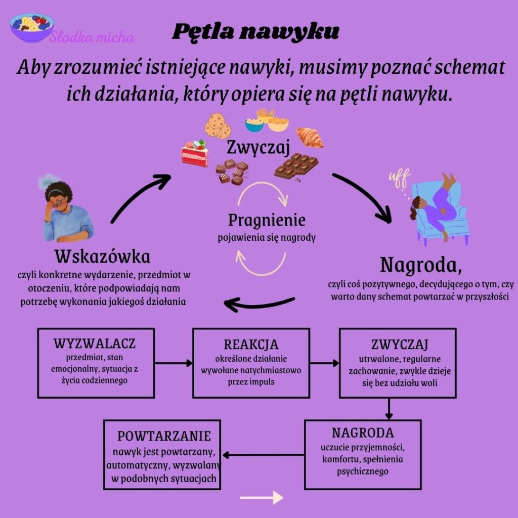Poniżej możesz zapoznać się ze schematem przedstawiającym trzystopniową pętlę nawyku, którą napędza pragnienie nagrody.